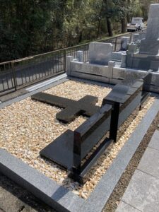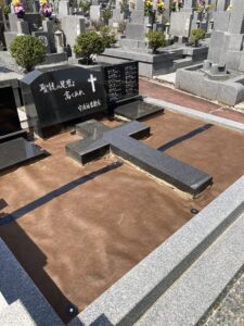 とある墓地のお墓で雑草で困っているとのご依頼です。雑草除去,残土鋤取り,防草シート,砂利敷設です。砂利はオシャレな明るい色を使用して明るい雰囲気になりました。ご依頼ありがとうございました。