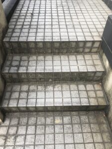 階段のタイルから板石張りに変更依頼です。洋風から和風へ。作業前です。
