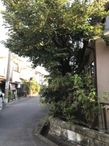 実家に行く通り道に春になれば,満開の花を咲かせていた桜の木を伐採抜根の依頼がきました。一応仕事で話聞きましたが、凄い心が痛い仕事なので、施主様には,もう一度考え直してもらえませんか?と言ってしまいました。結局,伐採抜根しなければならないです。木が大きくなり、根が建物の基礎を押して少し破壊してました。心が痛い仕事の作業前です。