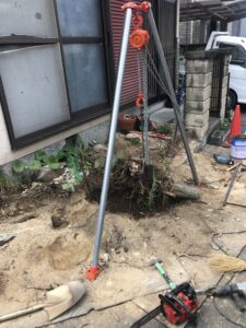 地中に線や管がたくさんあり潰したら大変なので人力で作業しました。凄く大変でした。