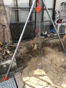地中に線や管がたくさんあり潰したら大変なので人力で作業しました。凄く大変でした。